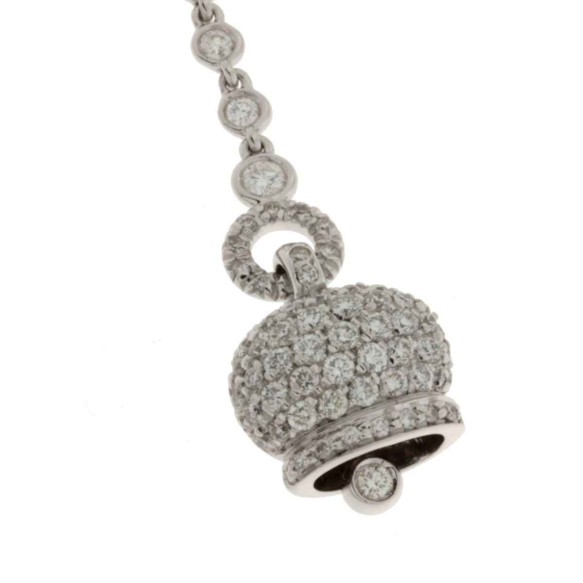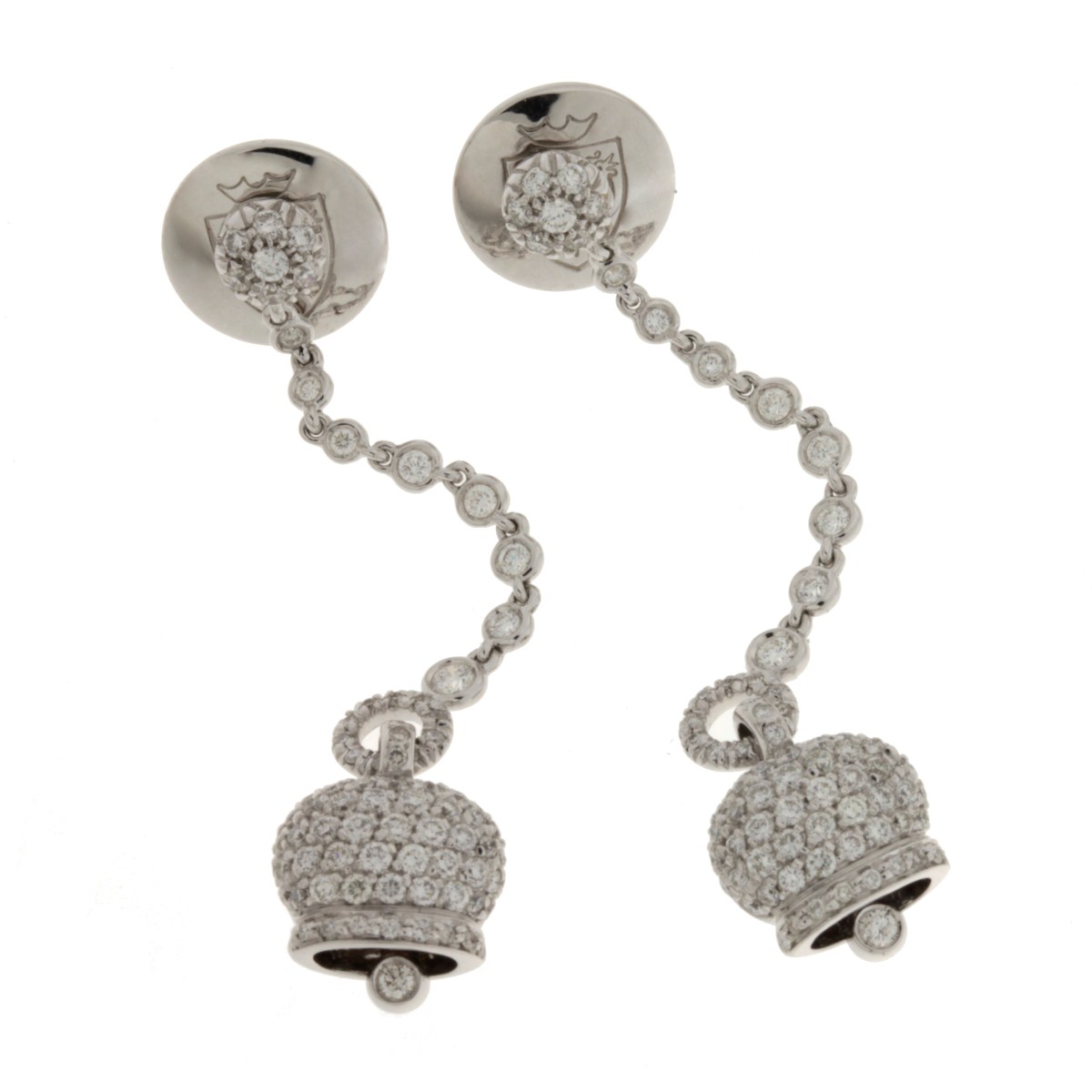 Orecchini campanella pendente in oro bianco con diamanti bianchi pavè