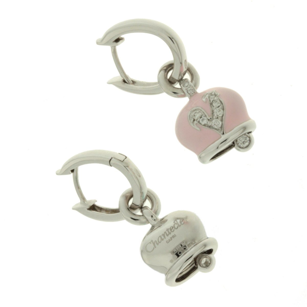 Orecchini campanella piccola oro bianco, smalto rosa e diamantii