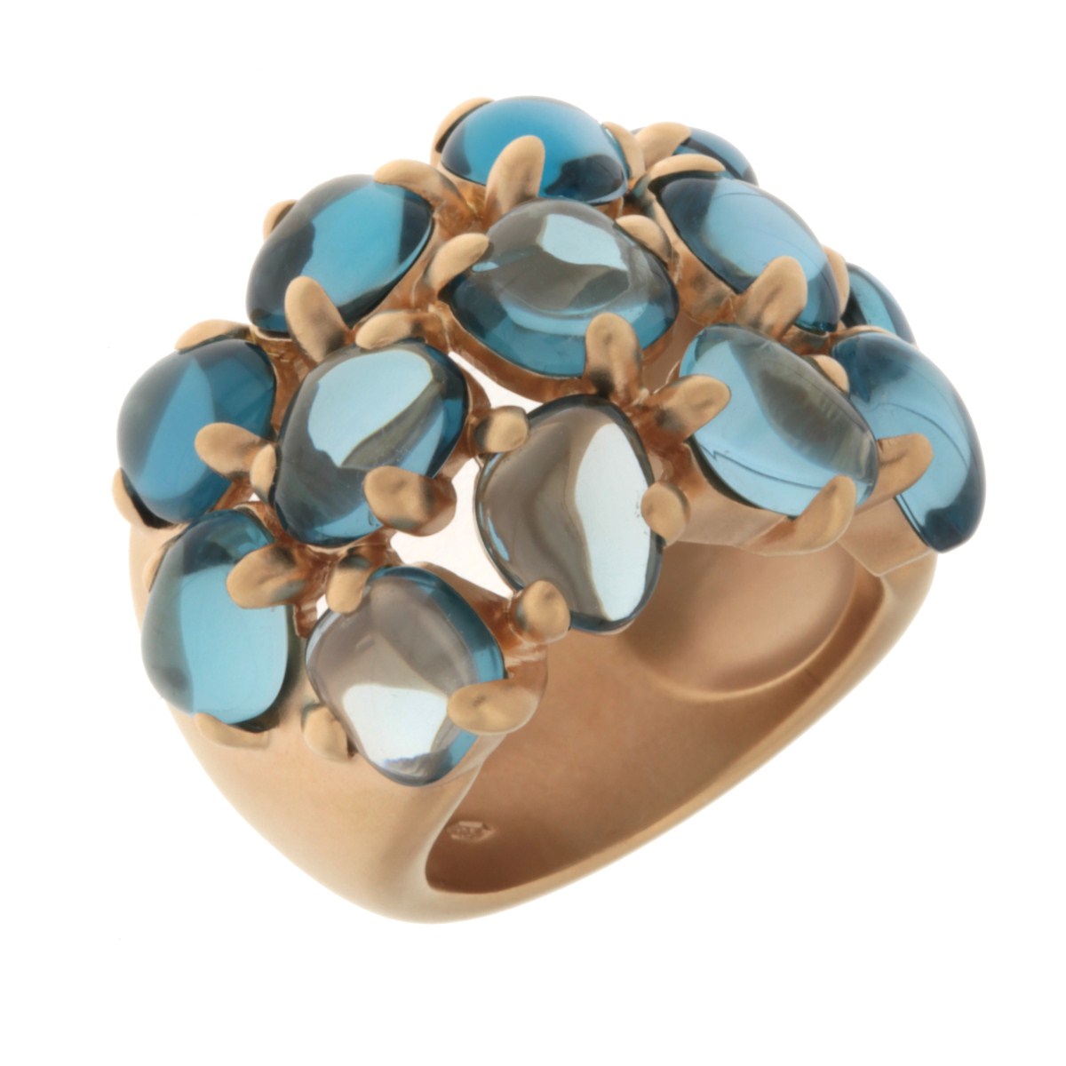 Anello Pomellato Nausica oro rosa mat e topazzi azzurri