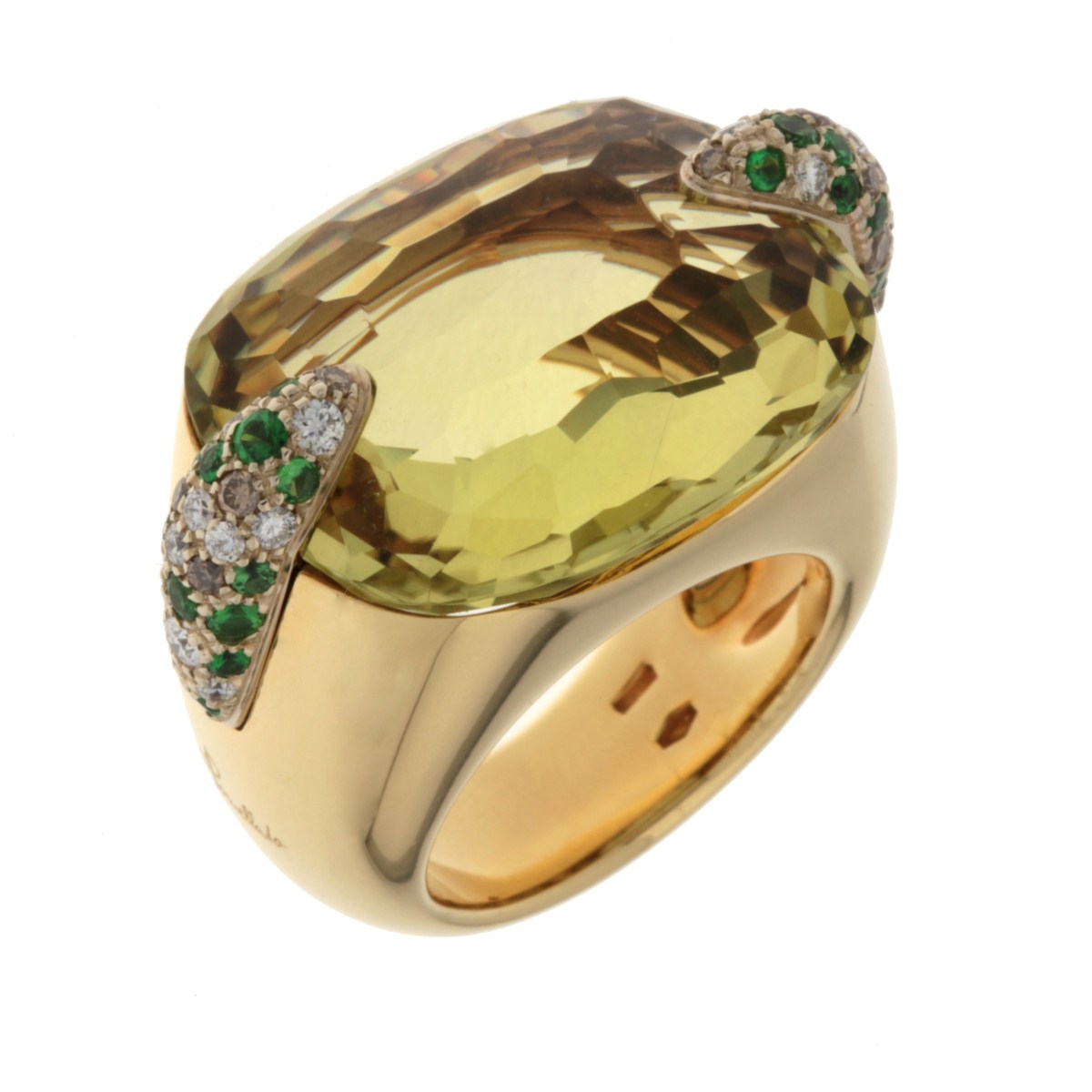 Anello Pomellato Pin-Up Oro giallo e bianco quarzo lemon, tsavoriti, brillanti bianchi e brown ct.0.48