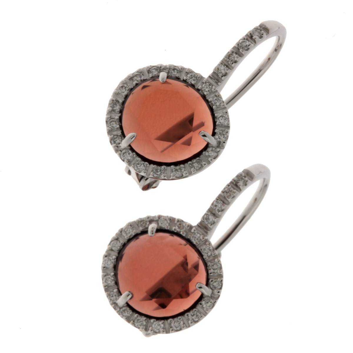 Orecchini Pomellato collezione "Colpo di fulmine" in oro bianco brillanti e granato