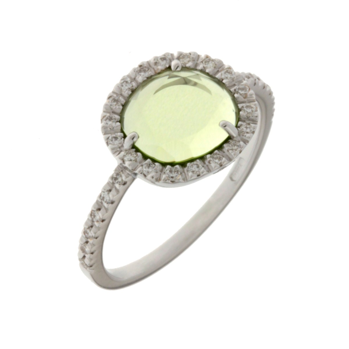 Anello Pomellato collezione "Colpo di fulmine" oro bianco brillanti e peridoto