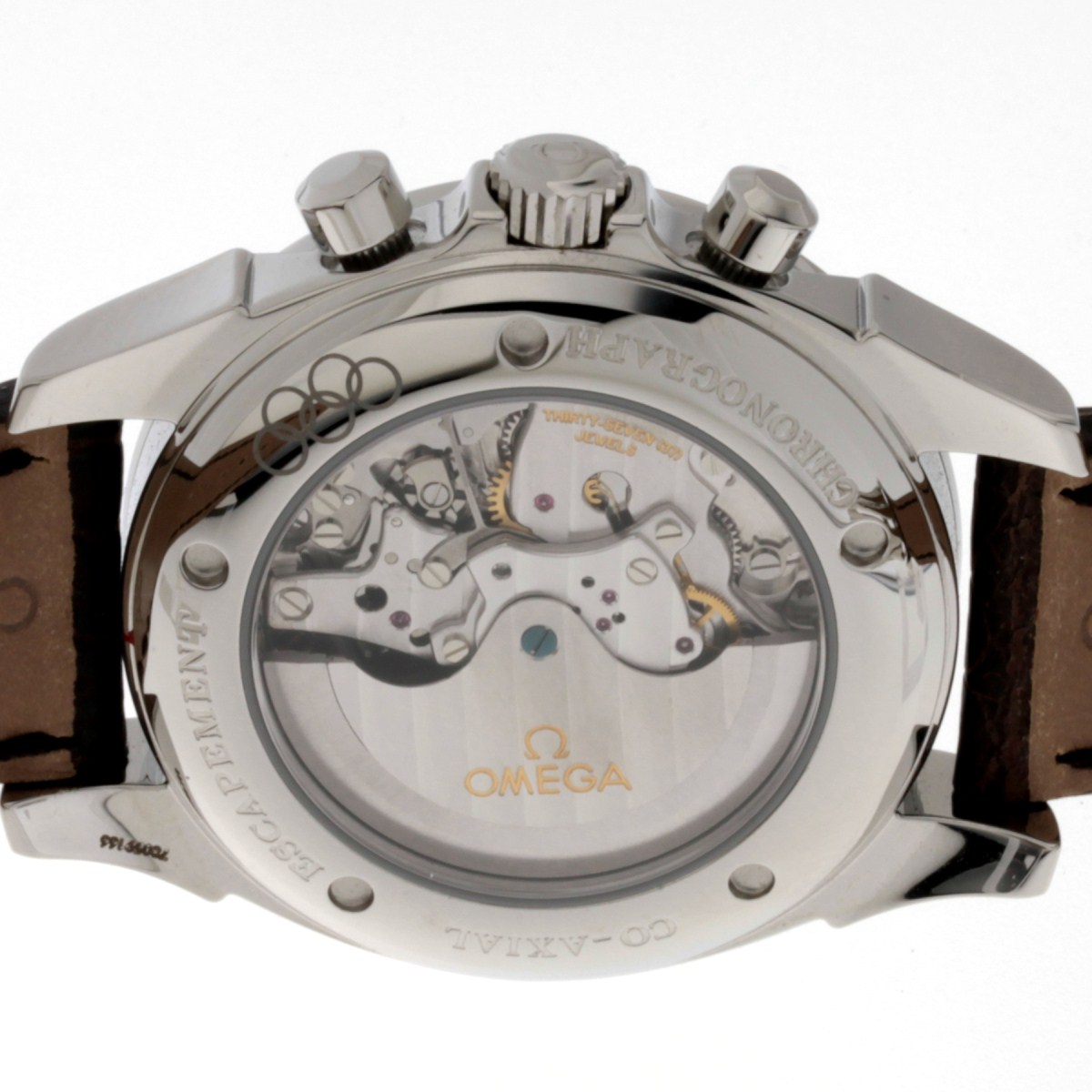 Movimento cronografico a carica automatica dotato di meccanismo con ruota a colonne e scappamento Co-Axial per maggiore precisione, stabilità e durata del movimento. Bilanciere a spirale libera (senza racchetta), con data, ore, minuti e piccoli secondi continui, lancetta cronografica centrale.