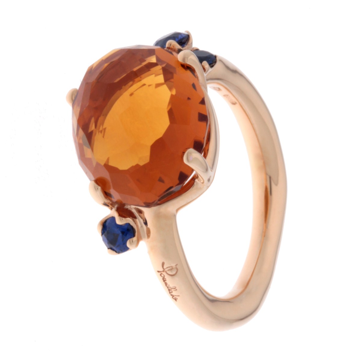 Anello Pomellato Bahia oro rosa quarzo madera e zaffiri