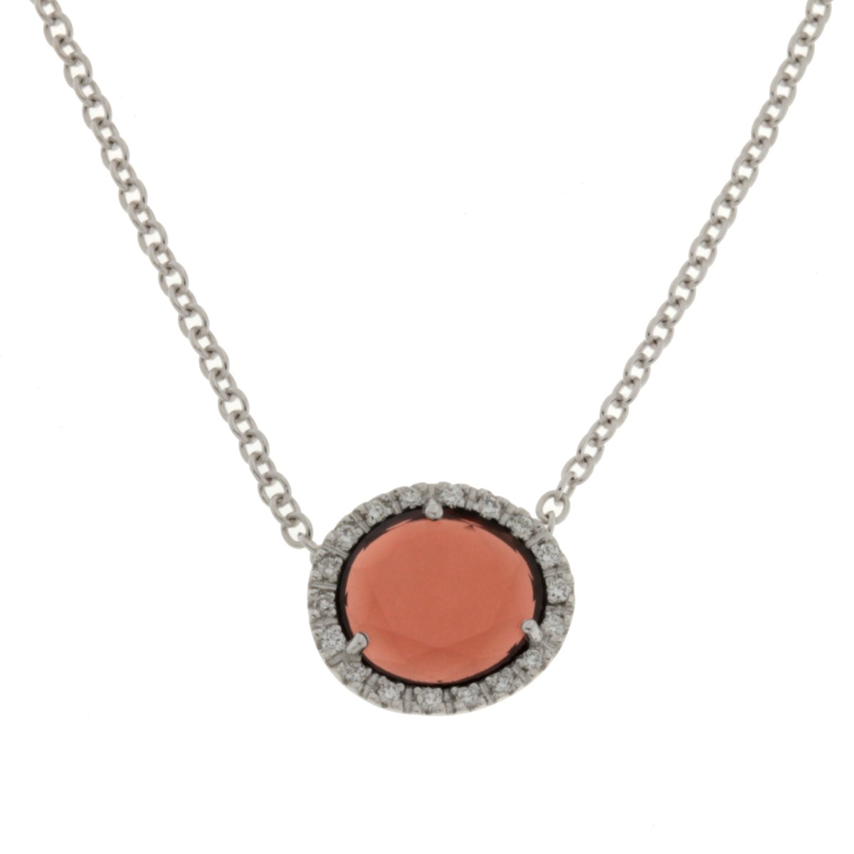 Girocollo Pomellato collezione " Colpo di fulmine" in oro bianco brillanti e Granato